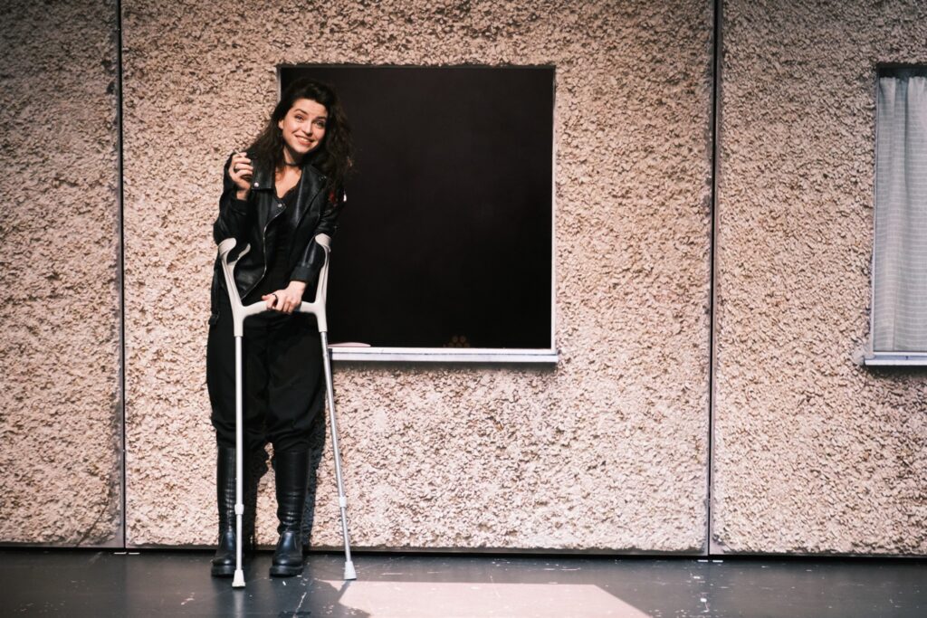 Eriti meeldejäävaks mängib Kuntu oma esimeses vaatuses esitatud naise. Ta on suitsetav punkar, terava huumorimeelega („Huumorisoon on nagu jalad, kõigil seda ei ole.“) ja ta räägib lahtise tekstiga, kuidas mehed talle kui jalutule külge löövad ning kuidas teda on solvatud. Karakter, keda on näitlejal väga lihtne üle võimendada, aga Kuntu jääb nüansirikkaks ja maitsekaks. Taas kordub keha ja hinge vastuolu, keha kui vangla kujund. „Ma elan siin. Selles kehas. Mul ei ole siit kuskile minna,“ ütleb ta.