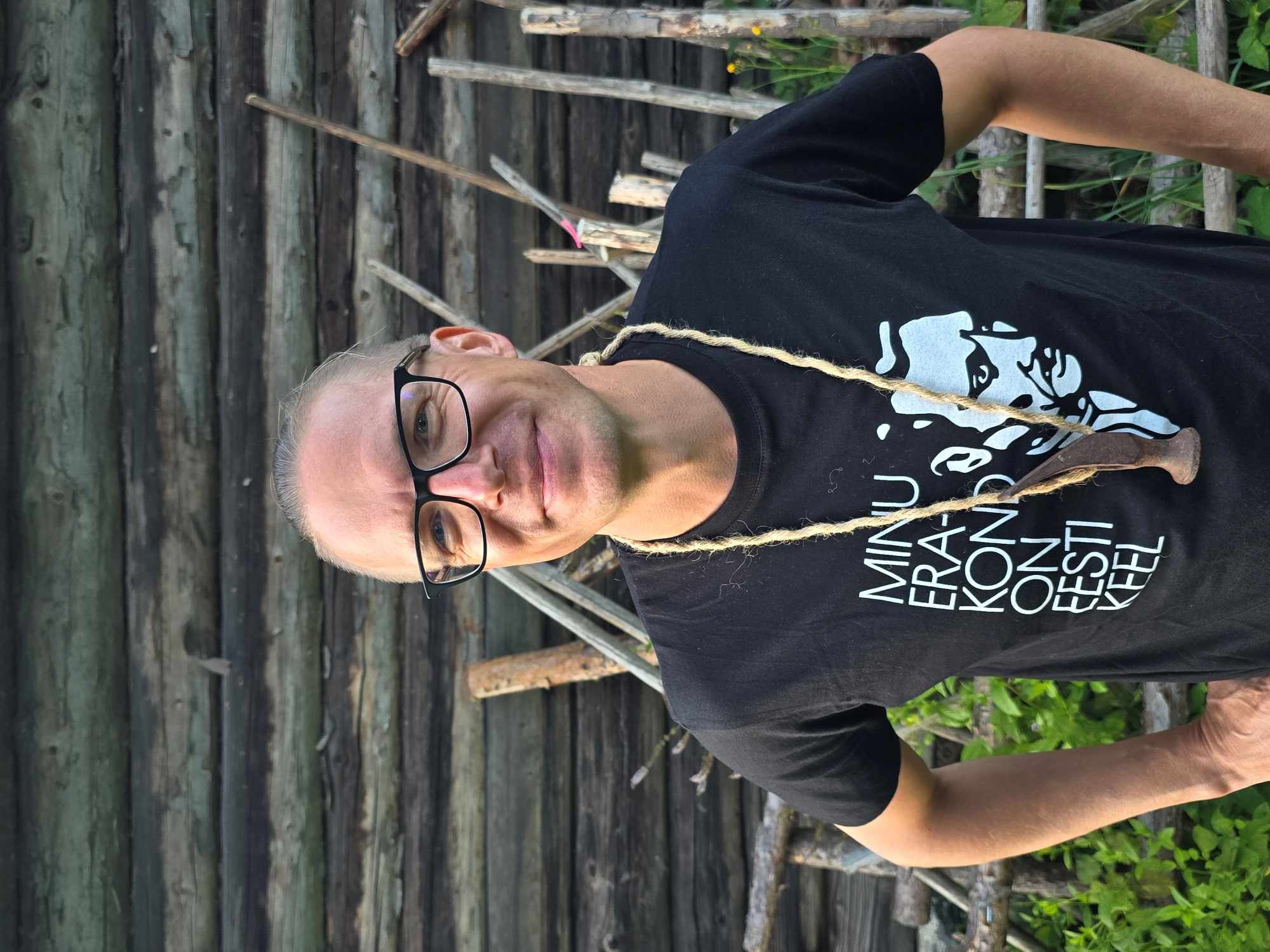 Foto: Urmas Vadi festivalil Eesti Kirjanik 2024 Liivi muuseumi õuel, foto autor Liis Lainemäe.