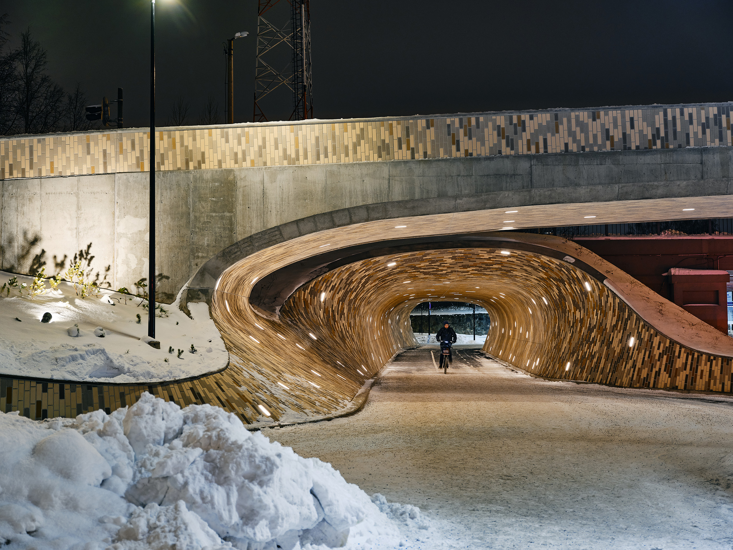Lõpptulemuses on kahest kandvast ideest realiseerunud tugev ja efektne arhitektuurivorm. Voogav, sujuv ja lainetav sild-tunnel mõjub veidi kosmiliselt, selle väljapoole avatud suu tõmbab kergliikleja endasse.