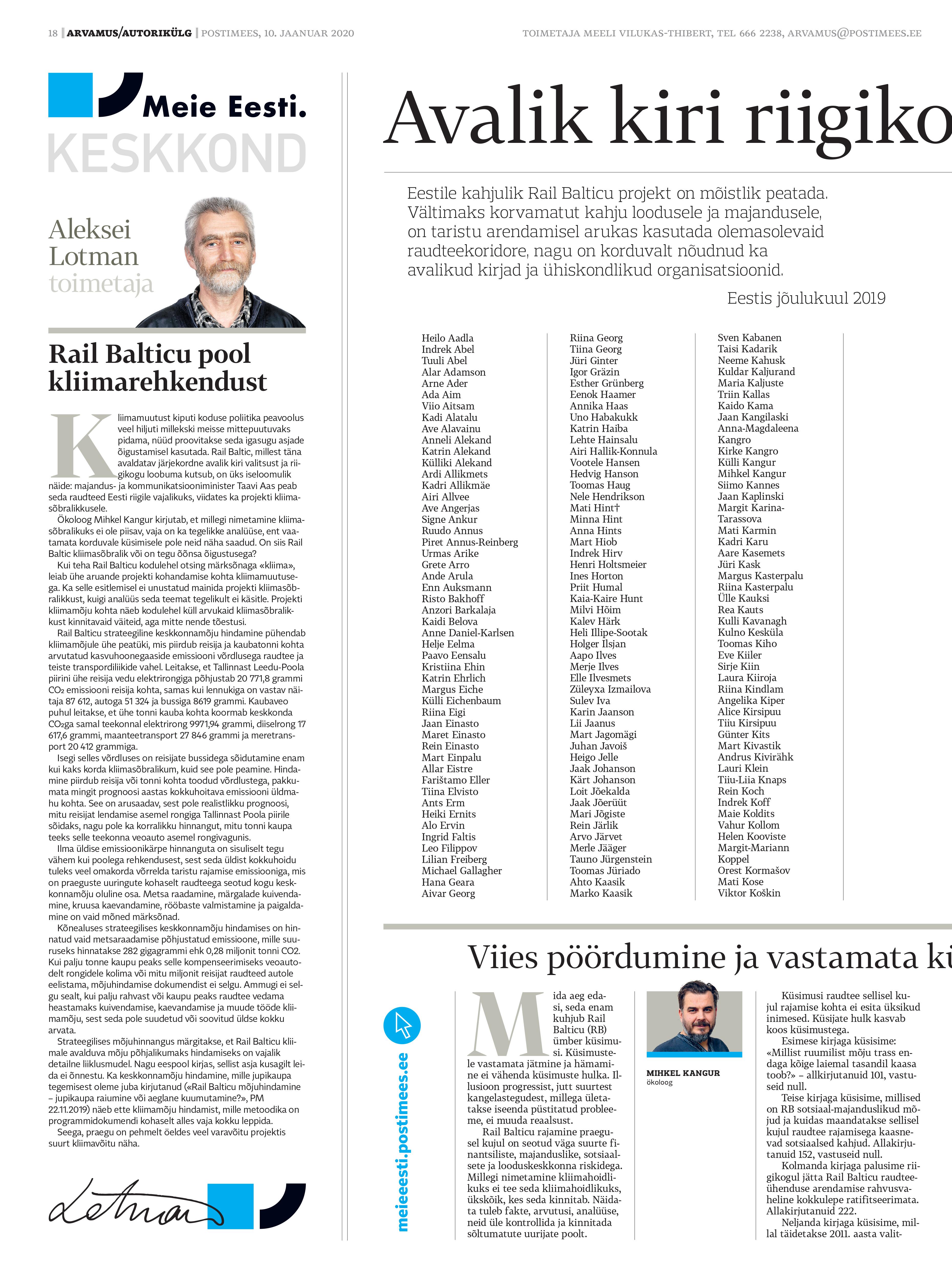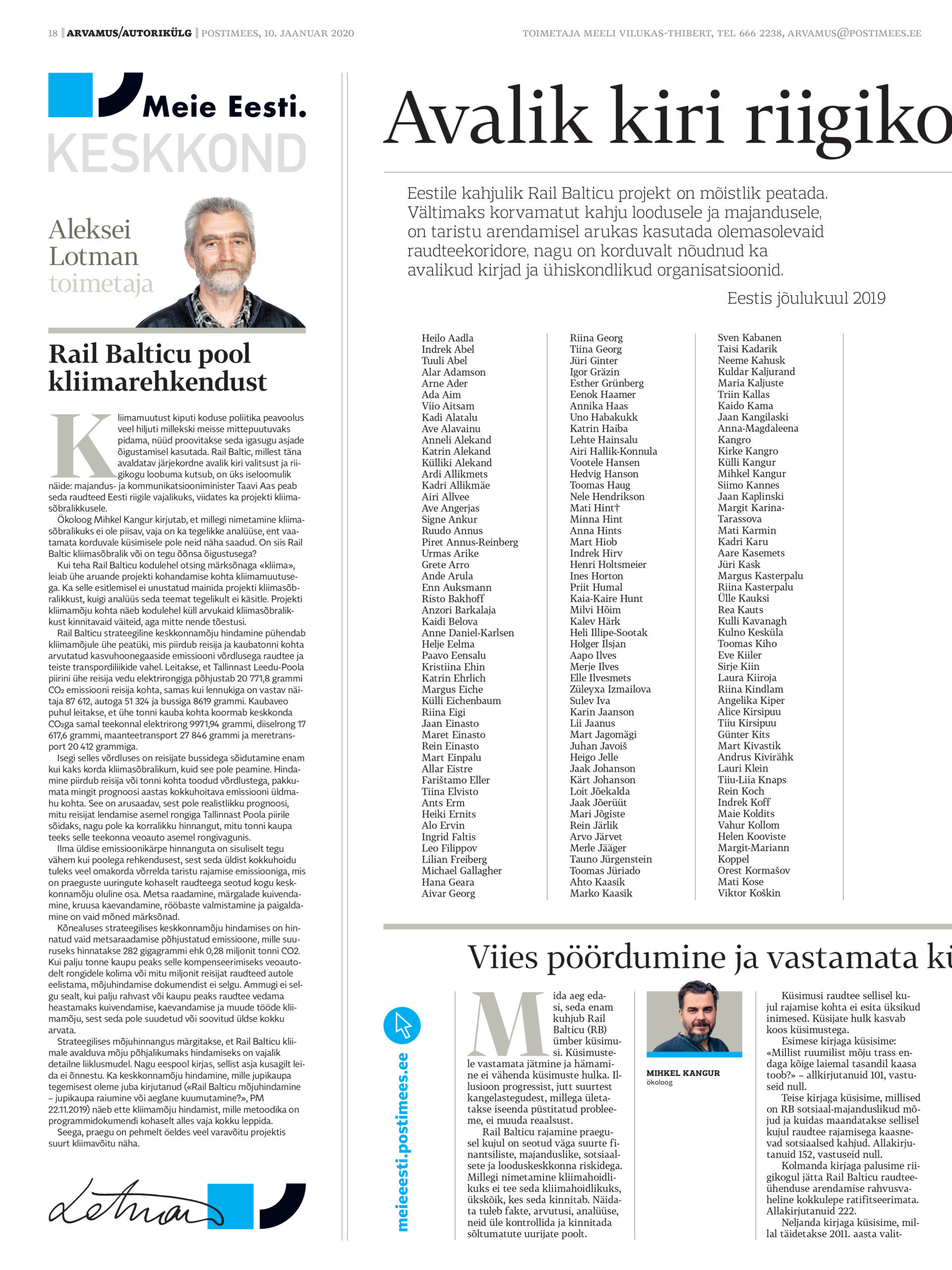 2019. aasta detsembris, kui toimusid pöördelised sündmused Postimehe toimetuses, sai valmis uus Rail Balticu rajamise vastase ühiskirja tekst üle 500 allkirjaga ning loomulikult soovisid kirja autorid, et see tekst ilmuks Postimehes.