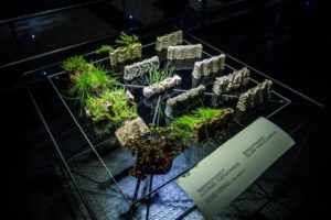 Nuomena rühmituse töö „Robootilised elupaigad“ ebatasasele liivaväljale on projitseeritud samakõrgusjooned ja seal peaks ringi sõitma roomikutel robot, näitlikustades, kuidas iseseisvaks liigiks muutunud robotid võivad oma tegevusega elukeskkonda mõjutada ja kujundada samamoodi nagu loomaliigid. Saali külgseinte äärde postamentidele on paigaldatud kaks rivi tahvelarvuteid, millest igaüks näitab kas selgitavat videot ühe näituseeksponaadi kohta või siis visioonivõistluse paremaid kavandeid. Saali teisel korrusel on väiksemamõõdulisi süsteeme uurivad tööd: pooleldi looduslikud ja pooleldi sünteetilised eksperimentaalsed materjalid, bioreaktorid jms. Näitusesaalis tekib kergesti tunne, nagu oleks sattunud mõnda ulmefilmi salalaborisse: tume ruum õhus rippuvate sinakasvalgete LED-valgustäpikestega, tehnoloogiline helitaust installatsioonide ventilaatoritest, pumpadest, mõne ekraani juurest kostvast tasasest jutust.
