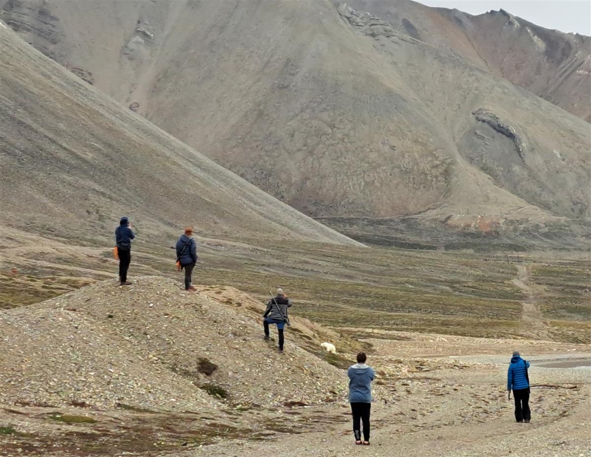Igatahes – me kõndisime Longyearbyenist koos tosina tšehhiga (neil on parasjagu Arktika praktikum, nii et mõned teadlastest juhendajad pluss kümmekond tudengit) Longyearbyenist Colesbuktasse, et uurida sealset taimkatet ja putukaid. Seal avaneb rannik lõuna suunas ja et liustikke ka ümbruskonnas pole, siis kasvavad seal Teravmägede mõttes lõunamaised taimed, näiteks vaevakask, mis roomab seal õige niruna, moodustades maapinnal kämblasuurusi latakaid. Mõned sääsed lendasid ka ringi, aga nad olid väga aeglased ja uimased, nii et see oli nagu mingi üle võlli paroodia Eesti suvest. Kui taimed ja sääsed said vaadatud, vahepeal ka kaasavõetud võileivad ära söödud ja oli aeg hakata tagasi liikuma, astus üks tšehhi teadlastest mingisse auku ja väänas põhjalikult oma jala välja. Ega midagi – helistasime satelliittelefoniga Longyearbyenisse, et sealt tuldaks talle paadiga järele. Kuigi meie meelest oli ilm päris kena, päike paistis ja tuul oli ka leebe, ilmnes, et tuul puhub täpselt selle kõige halvema nurga alt ja väikese kummipaadiga kohe kindlasti ei saa õhtul meile järele tulla.