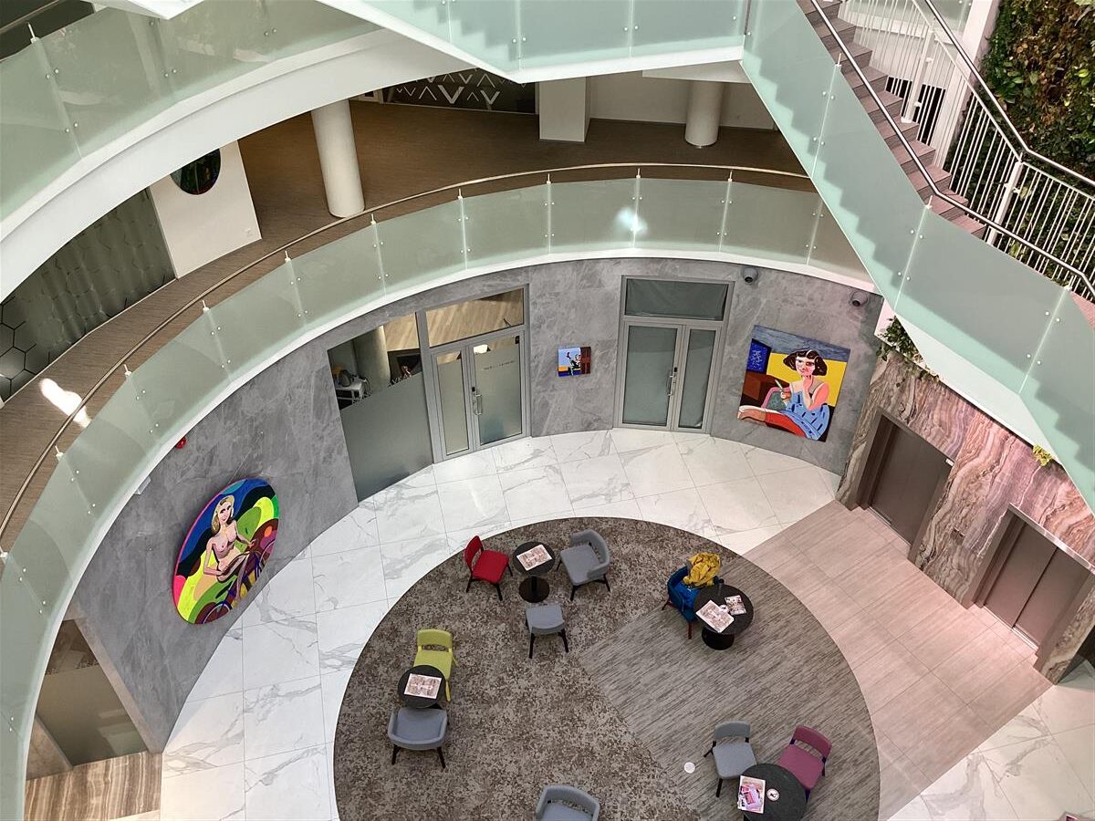 Maalinäitus hõlmab Kadrioru Plaza keskse aatriumi ringgalerii kõiki korruseid – tegemist on Vilen Künnapu ja Ain Padriku projekteeritud hoone galeriiga. See on justkui meie arhitektuuriline versioon New Yorgi Guggenheimi kunstimuuseumi ikoonilisest hoonest (1959), mida on omakorda kasutanud postmodernistlikud kunstnikud, näiteks