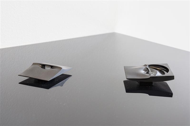 Eve Margus-Villems on graveerinud basaldist süvendiga sõrmuse, mille põhja valgunud mustavalt õlilaigult peegeldub vaataja enese kujutis.