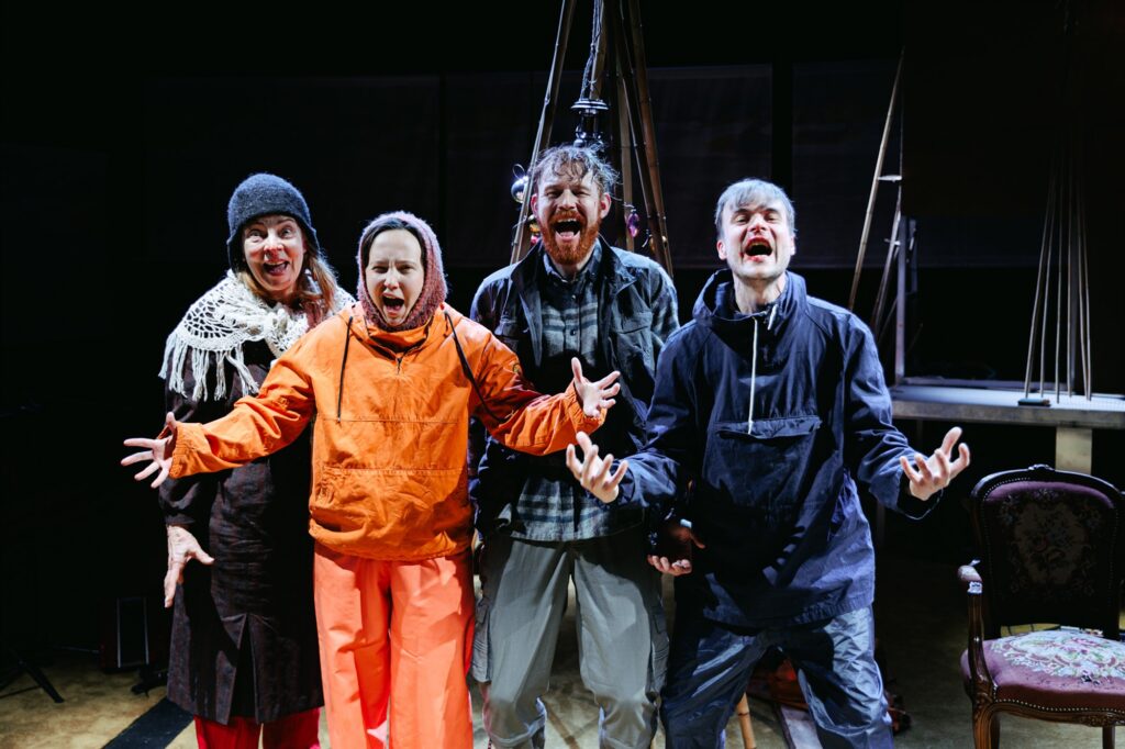 Neli osatäitjat (Ülle Kaljuste, Maria Liive, Ott Kartau, Marten Kuningas) ilmuvad lavale jahedale rannatuulele vastavas riietuses: kummikutes ja mitmekihilistes rõivastes.