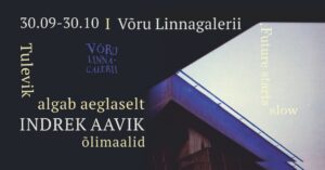 Indrek Aavik (1990) on Tartust pärit maalikunstnik. Hariduse omandanud Tartu Ülikooli bakalaureuseõppes maalikunsti erialal ja Eesti Kunstiakadeemia vabade kunstide teaduskonna magistriõppes ning on täiendanud end Porto Ülikoolis Portugalis. Osalenud mitmetel grupinäitustel ja projektides Eestis. “Tulevik algab aeglaselt/Future starts slow” on esimene isikunäitus.
