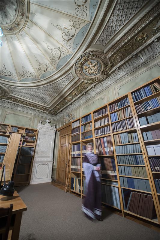 Lilla Daam, kirjandusmuuseumi kummitus arhiivraamatukogu lugemissaalis.