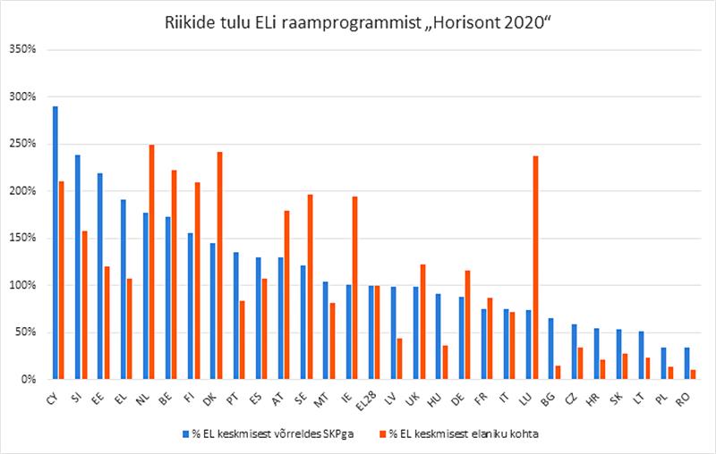 Eesti on seni olnud edukas „Horisont 2020“ osaleja – Eesti teadlased on 2014. aasta algusest kuni käesoleva aasta maini saanud „Horisondist“ kokku üle 72,6 mln euro, mis on 1,2 korda rohkem teadusraha elaniku kohta kui ELis keskmiselt. SKTga võrreldes oleme osalusnäitajatelt liikmesriikide seas 3. kohal (219% ELi keskmisest), Horisondi projektides täistööajaga osalevate teadlaste arvu järgi aga 9. kohal (134% ELi keskmisest). Sealjuures on ligikaudu 30% Eesti osalusest andnud ettevõtted. Toetust oma teadus- ja arendusprojektidele on „Horisondist“ saanud näiteks superakude tehnoloogiat arendav Skeleton Technologies, keeleõppe tarkvara arendav Lingvist Technologies ja IT-süsteeme ning küberturvalisuse lahendusi arendav Cybernetica.