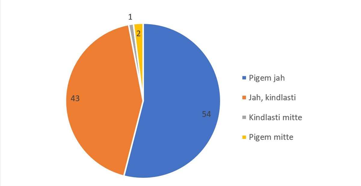 Hoopis teine küsimus on, kas vastaja ise oleks sellise stsenaariumi korral valmis rikkumisest mingil viisil teavitama. Siin ilmneb, et ligi 14% eelmisele küsimusele vastanutest ei omanud kindlat seisukohta või jättis vastamata. Kuid nendest, kes küsimusele vastasid, teavitaksid 97% rikkumisest kas kindlasti või „pigem jah“ (vt joonis 3). Seega – Eesti töötajate valmidus ka ise vajaduse korral rikkumisest teavitada on suur ja küllap see seletabki, miks Eestis arvatakse, et ELi direktiiv lahendab mingit pseudoprobleemi.
