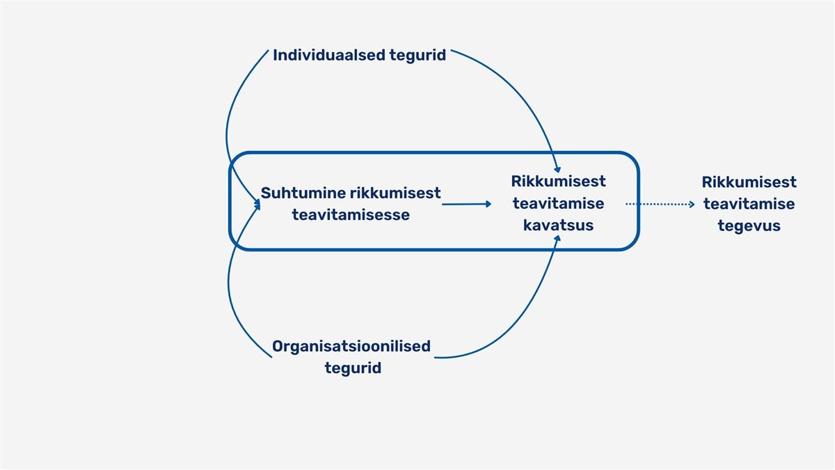 TPB kohaselt määrab inimese käitumise kavatsuse tema enese suhtumine nähtusse ja see ilmneb ka meie uuringus: kui töötaja suhtumine vihjeandmisse on kahetine või negatiivne, siis tõenäoliselt ei plaani ta ka ise sellesarnasesse situatsiooni sattudes rikkumisest teavitada.