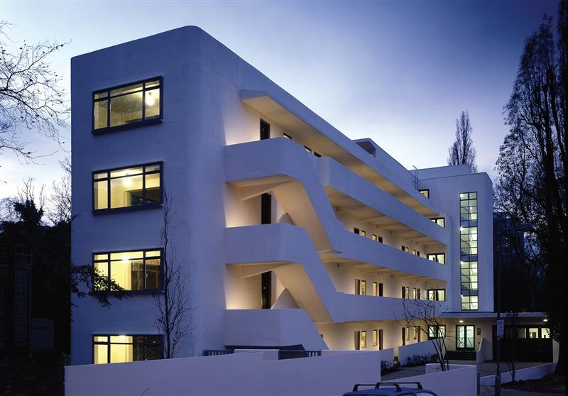 See betoonpaneelelamu koosneb neljast, galerii juurdepääsuga korrusest. Pricthardi perekonna korter asus ülakorrusel, kus oli peakorter ja väiksemad lisad perepoegadele. Pritchardid pidasid lugu heast seltskonnast, toidust ja veinist ning kujundasid Lawn Roadi majas elava atmosfääri, mis oli tolle aja Inglismaal väga eriline. 1930. aastate keskpaigast pakkusid nad peavarju arvukatele natsi-Euroopa põgenikele, nende hulgas oli ka Bauhausi asutaja Walter Gropius, õppejõud Marcel Breuer ja László Moholy-Nagy.