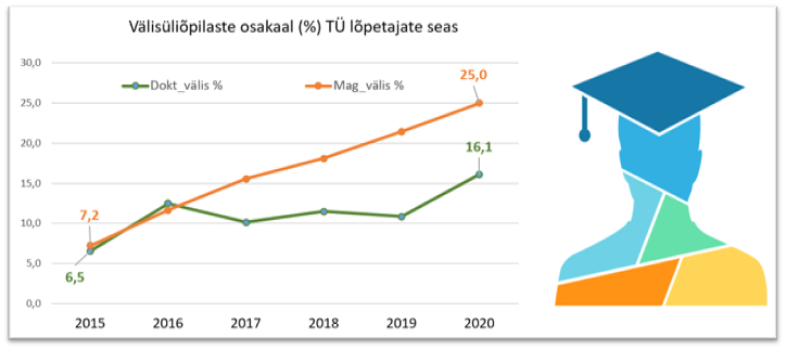 Joonis 1. Välisüliõpilaste osakaal TÜ lõpetajate hulgas1