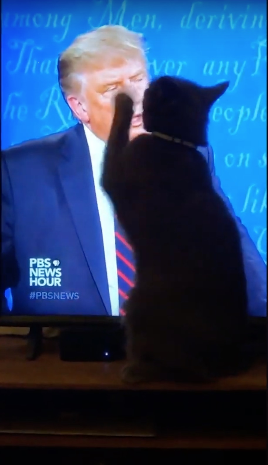 Poliitikud, maailmas on ka palju toredaid inimesi, seal on armastust ja helgust. Nautige seda, parandage meelt, sest teid on tülgastav vaadata. Saage terveks ja hakake tegema poliitikat nii, et ka teised jääksid terveks! Pildil Ashley Connorile kuuluv kass Cole Portlandist, kes kõigi aegade inetuimaks arvatud presidendikandidaatide debati ajal lakkamatult Trumpi ülesastumiste peale ärritus.