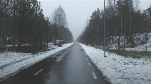 Lõpus seisab üksik jalgrattatee, kus pärast sula, vihma, lund tõuseb päike.