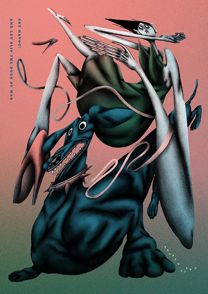 Mart Anderson, fontide konstrueerimise professor, on teinud Estonia uue fondi ja noorte laulu- ja tantsupeo kujunduse. Margus Tamm ajab isikupärase käekirja juures taga originaalset ideed (sellest ka auhinnad). Andrei Kormašov meenutab mulle moodsa retro ja koloriidiga mõneti hollandlasi. Anna Lukjanoval on etteaimamatu teos, kus elevant avastab, et ta lont on moondunud maoks. Berta Kisandil on end silda visanud Eeva, kellele madu üritab õuna suhu toppida. Erik Teemäe teoses „Kes on järgmine?“ („Who is next“) on kujutatud revolvri pöörlevat trumlit, üks padrunipesa on laetud Putiniga). Kaia Rähni sõjas või rahus visatakse kulli ja kirja, kas ja keda tappa. Kata Kaldoril on koorunud munast tibu asemel tellis.