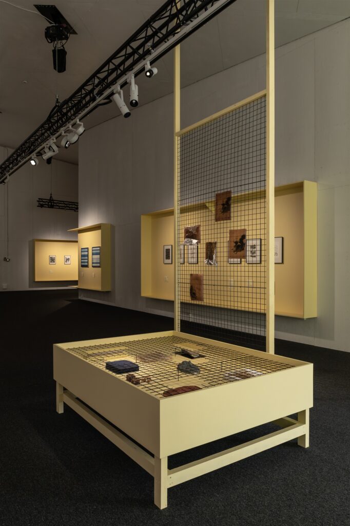 Näib, et sellega sarnasest praktikast ja mõtlemisest on tõukunud mitmed graafikatriennaali peanäitusel osalevad kunstnikud. Ka selle näituse pealkiri osutab keele-eelsele staadiumile, kus mõte ja tähendus alles hakkab vormuma.2 Näiteks Anne Rudanovski loodud origamiteoste „Tähestik enne ja pärast“ (2025) vormid saavad tähenduse paberi voltimise protsessi käigus. Kunstniku loomingus ei ole paber pelgalt vahend, millele oma mõtteid talletada, vaid keskne materjal, mille lõpututest voltimisvõimalustest sündinud vormides on talletatud kunstniku tunded ja meeleseisundid.