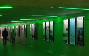 Arhitektuuris on disainimine juba olemuslikult uurimus, kui see kavandab tulevikku, milles soovime elada ja tegutseda. Pildil näitus „bio.kool“ Balti jaama jalakäijate tunnelis, avatud kuni 3. XI.