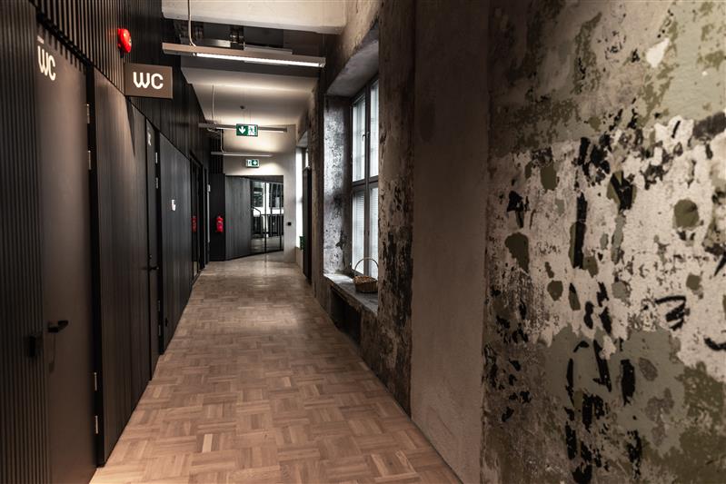 Üks minu lemmikpaiku on kuuendal korrusel asuv üliõpilasesinduse kontor, mis on paigutatud endisesse sukavabriku liftimehhanismi ruumi. Kontori põrandas on trosside-läbijooksude augus klaas ja läbi klaasi on kuut korrust hõlmav mänguline ümar koridor justkui peo peal. See koridor on populaarne mitte ainult oma mängulisuse, vaid ka hea akustika poolest. Kontor aga on ihaldatuim töökeskkond, pealegi avaneb sealt Tallinnale pea 360kraadine vaade.