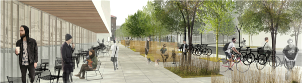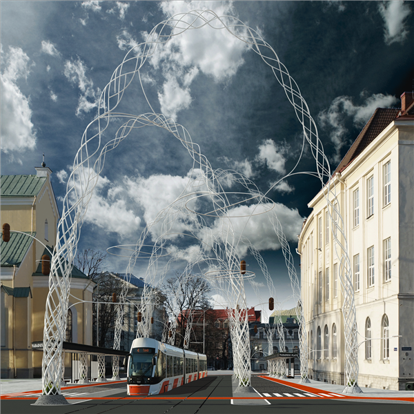 II preemia vääriliseks tunnistatud töös on kavandatud muutusi palju laiema pintsliga. Kõige jõulisem on peatänavat palistav metallist kaarestik, mis kannab trammikaableid ja valgusteid. See on ühelt poolt väga hea mõte, sest nii on ilmetust taristuelemendist saanud disainiobjekt, kuid võib osutuda ebaotstarbekalt priiskavaks. Kaarestik on kaetud metsviinapuudega, mis asendab traditsioonilise haljastuse.