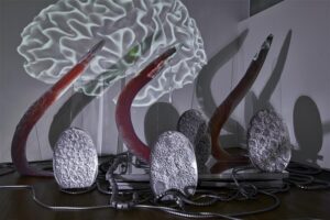 Müüdi kaitsva vammuseta on elu külm ja konkreetne. Satelliidifotod orkaanidest ja punaselt särav mandeltuum aju läbipildistusel ühenduvad võib-olla mingi algoritmi käsitluses terviklikuks – näiteks üleujutuses oma abikaasa kaotanud mehe valuks –, kuid jätavad spetsiifiliste taustateadmisteta näitusekülastaja paremal juhul külmaks, halvemal juhul pälvivad reaktsiooni „eks see üks kunst ole“. Kui mõnes võimalikus tulevikus anda loovkirjutuse algoritmile ülesanne analüüsida Novitskova näitust ja luua selle põhjal tekst, siis ei seostuks produkt arvatavasti mitte Strugatskite, vaid pigem Tšehhoviga. MamaRoo lastekiikedele konstrueeritud robotilaadsed punasilmsed monstrumid võivad aga intelligentse masina puhul anda reaktsiooniks tühjale kõhule vastava või seda matkiva emotsiooni, kuna nende liikumise analüüs ei seostu mitte kunstikategooriate, vaid mesilase tantsuga, mis annab teistele taruelanikele mõista, kus asub toit ja palju seda on. Veidi utreeritult: mingi kujuteldav mobiilirakendus hakkaks külastajale soovitama Kadriorus asuvaid kohvikuid, kuna kasutaja vaatleb kolleegi toidutantsu – seega, rakendus ei toimi, toimib ebaloogiliselt, külastaja sooviks pigem, et ta suunataks Novitskova veebilehele. Paari aastakümne pärast hakkavad copywriter’id alles vaeva nägema, et tehisaru mõistaks ümbritsevat infot lähtuvalt inimesest, müüdist, oleks natukene loll, mitte ei näeks maailma objektiivselt. Igaüks, kes on kokku puutunud veebilehtede loomise ning SEOga,6 mõistab, mida ma silmas pean. Veebileht, kus oleks ainult käesolev tekst, jääb kunstihuvilisele kättesaamatuks, kui ma just ei lisa siia otsingumootori algoritmi jaoks kriitikute stammsõnavara: postmodernism, ambivalents, invariant, tekstuur, biennaal jne.