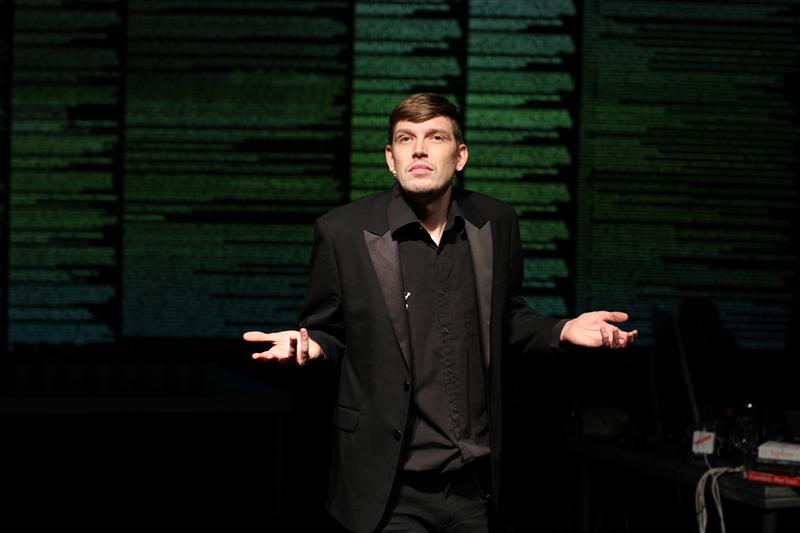 Ehkki juba Kalmeti ja Havanski hoiak loengu kallale asudes häälestas pigem aukartusele kui üleolekule, pisendati teema etenduse käigus justkui ära: lavale toodi tõdemused, mis ei andnud meile aimu inimese väiksusest vohavas infometsas, vaid joonistati lihtsalt üsna selgelt välja oma teadmiste piirid. Nagu keskpärases ulmekirjanduses, kus räägitakse küll justkui tundmatust tulevikust, kuid too tulevikuinimese ja -ühiskonna kujutis on pelgalt paberil kalkuleeritud ratsionaalne ekstrapolatsioon. Selline mõjuerinevus ei tarvitse küll tuleneda teadlikult valitud kohaloluvõtmest, vaid suhtest ainesega, millest pikemalt arvustuse lõpuosas.