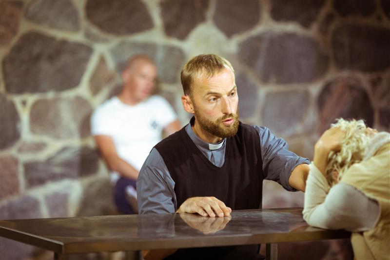 Seevastu Märt Avandi Ivan oma koomikavõtetega loodud sõnaohtruses ja ülevoolavuses püüab nõnda justkui ka iseenesele pidevalt oma usku meelde tuletada. Kümne aastaga on meie maailmas ilmselt süvenenud künism, sõnade tähendus on veelgi enam ähmastunud, kuid sellevõrra on hägustunud ka pooltoonid ja võime neid tajuda. Avandi ja Vaarik ei ole laval mitte eeskätt kahe koomikuna, kes filmi ainetel publikut lõbustavad, vaid kehastavad ajas muutunud debatti. Filmis võitleb veendunud vaimulik Aadamas pesitseva saatanaga, kuni Aadam saab ilmutuse ning doktor konstateerib ja kommenteerib kiretult sündmuste käiku. Lavastuses püüavad aga Ivan ja doktor oma välises ekspressiivsuses ületada Aadama ükskõiksuse müüri, kusjuures viis, kuidas doktor püüab endist neonatsi enda poolele võita, vihjab taas sellele, et praeguses maailmas peidab Saatan end veel kavalamalt. Nagu öeldud, ei tea me päris täpselt, mis saab lavastuses teistest tegelastest pärast doktori lahkumist. Müsteeriumina on teatriversioon aga pigem Ivani muutumise lugu, milles kõneldakse tema enesegi usu tugevnemisest.
