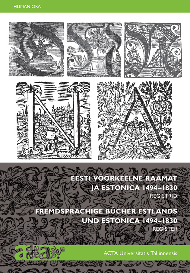 „Eesti võõrkeelne raamat ja Estonica 1494–1830“ ilmub Tallinna Ülikooli kirjastuse sarjas „Acta Universitatis Tallinnensis. Humaniora“ Teose ilmumist toetasid Eesti Kultuurkapital, Haridus- ja Teadusministeerium ja Rahvuskultuuri Fond.