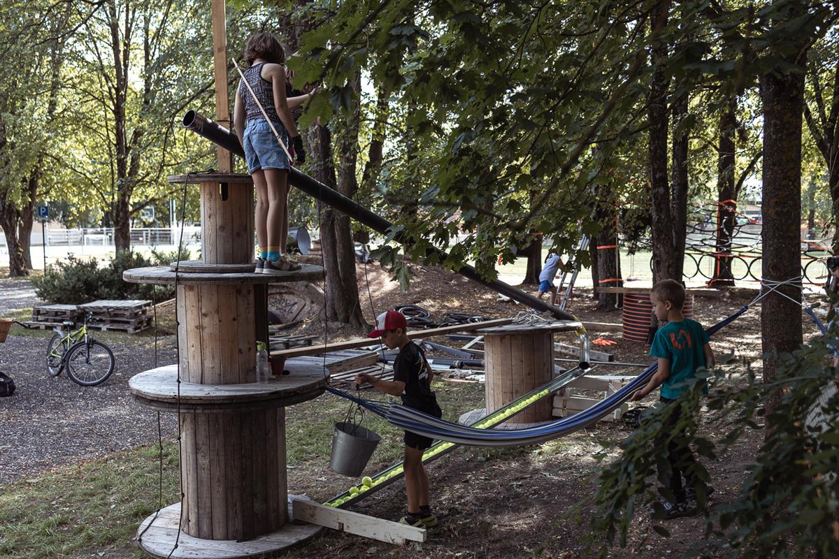 Ajutine mänguala 16.  19. VIII festivalil „Uit“. Juhendajad ja ehitajad Mari Liis Viirsalu (MTÜ Lapsed Õue), Kerli Irbo ja Kristin Leis (arhitektuurikooli Tartu haru) ning arhitektuurikooli lapsed.