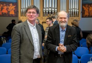 Leopold Brauneiss ja Arvo Pärt raamatu „Arvo Pärdi tintinnabuli-stiil: arhetüübid ja geomeetria“ esitlusel.