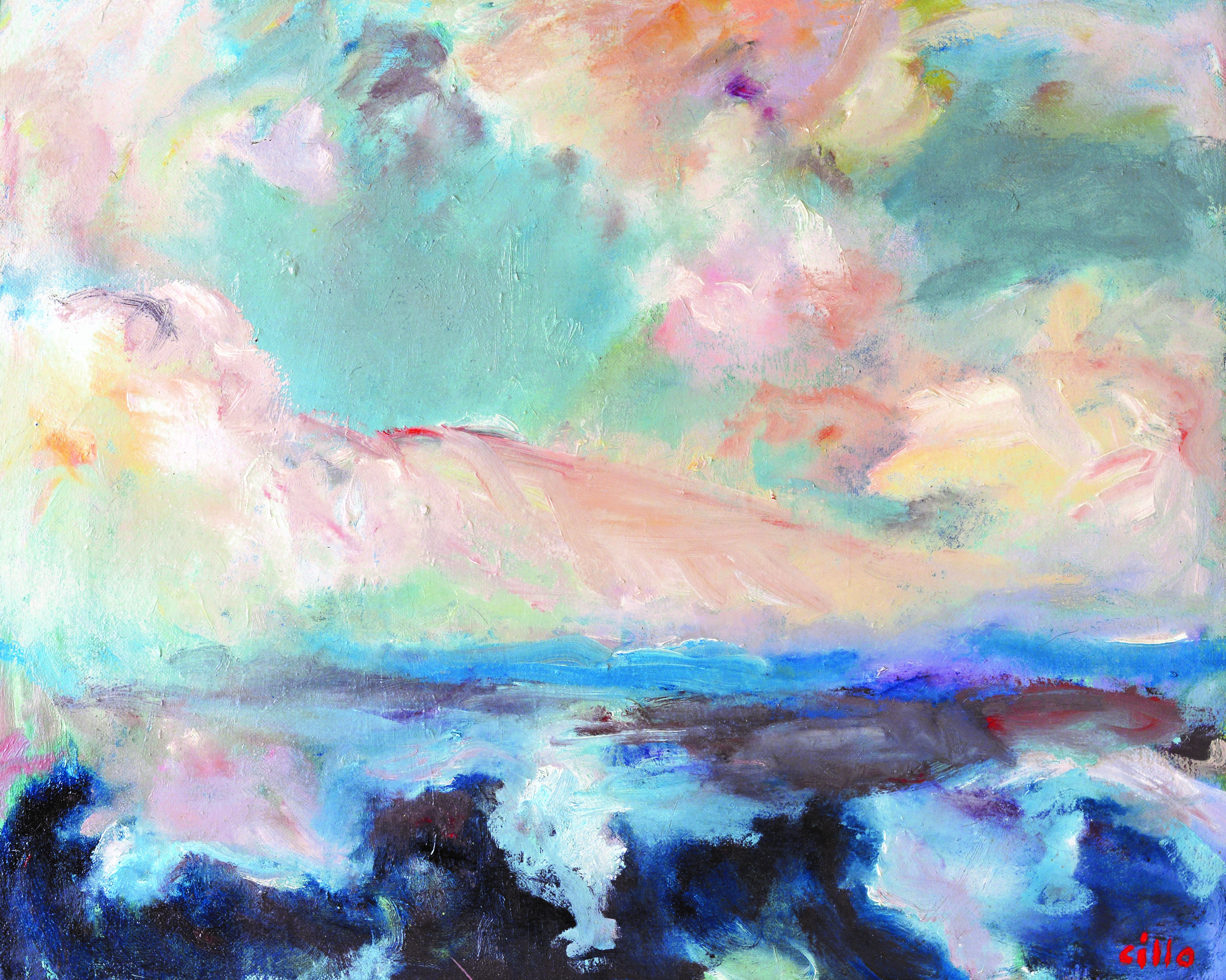 Cillo veetis elu kodukandis Venetos, välja arvatud aastad 1951–1958, mil ta tegutses edukalt Brasiilias. Ta õppis Veneetsia kunstiakadeemias, Veneetsia oma kunstivarade ja -sündmustega oli tal alati käe-jala juures, Treviso muuseumiski on Veneetsia maalikoolkond hästi esindatud. Teda inspireeris Veneto loodus: tema loomingus on palju maastikku, maalilisi visioone Alpide eelmäestikust või merest. Mark Soosaarel on õigus, kui ta leiab, et maalis „Hommage Monet’le“ (2003) on Cillo sidunud erilise meisterlikkusega tervikuks valguse ja värvimängu pilvedes. Okkale, põhjamaalasele olid tema Itaalia-reisidel (1960, 1966, 1994) ilmutuseks linnad oma sajandeid püsinud arhitektuuriga, mille suurejoonelisust murendav ajahammas on seda ühtlasi erilise auraga ümbritsenud. Laguunilinn lummas kunstnikku nagu paljusid kunstiinimesi enne teda, selle kummalist salapära õhkub maalist „Veneetsia karneval“ (1995). Teda võlus ka elusagin ümber mälestiste, naistüübid, kelle kaudu ta püüdis edasi anda maa omapära, selle avalust ja temperamenti. Graafilise Itaalia-sarja (1961) lehelt „Vaen“ tuntud nunn esineb ka maalil „Rooma kontrastid“ (1966), taustaks mitte noor sensuaalne naine, vaid nüüdisaegne arhitektuur. Näib, nagu oleks too nunn vallandanud kunstnikus mõtteid kasvavast lõhest tehnoloogilise tsivilisatsiooni ja inimteadvuse vahel. Mara Ljutjuki läbimõeldult eksponeeritud valikut täiendavad Evald Okka maalitud harmoonium, kirst ja mõned toolid.
