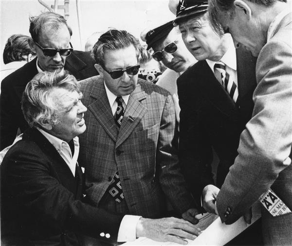 Müncheni olümpiamängude purjeregati (1972) korraldustoimkonna esimees Berthold Beitz Tallinnas ettevalmistust nõustamas. Keskel Ivar Kallion.