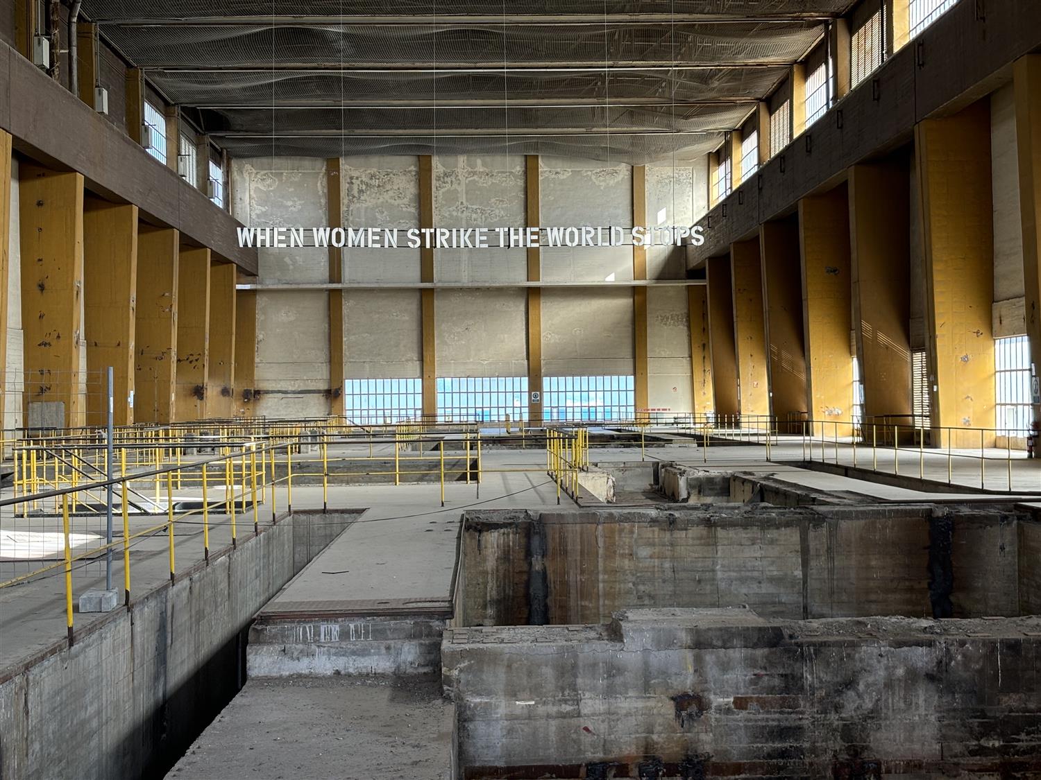 Sitsiiliast pärit feministliku kunstikollektiivi Claire Fontaine neoonkirjas lause: „When women strike the world stops“ (kui naised streigivad, siis maailm seiskub), mis rippus Seekordsel „Manifesta’l“ keset pompoosse tehasehoone industriaalset kesta.