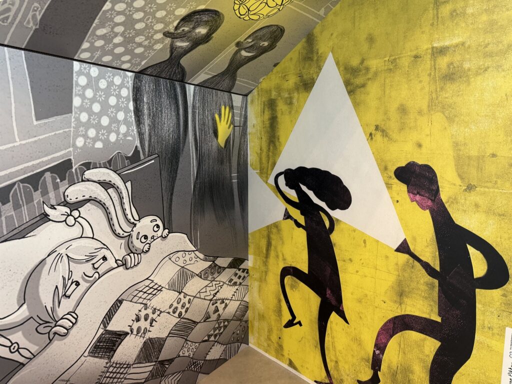 Näitus koosneb kolmemõõtmelistest majakestest, mis meenutavad üksiti ka avatud raamatut. Kuid erinevalt raamatust on neil ka lagi ja katus. Piltide paigutusega on loodud mosaiikseid kooslusi ja huvitavaid dialooge, näiteks on kokku pandud õõvastavad öised stseenid eri raamatutest ja eri kunstnikelt. Mõnel teisel puhul jällegi on majakese kõik küljed täidetud samast teosest pärit piltidega.
