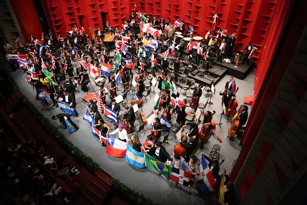 Ameerika Talentide Sümfooniaorkester liikmeskond on valitud Uue Maailma riikidest, sh mehhiklasest dirigent Carlos Miguel Prieto. Sel korral oli reisipaunas ühes võetud veidi Bernsteini ja Revueltast.