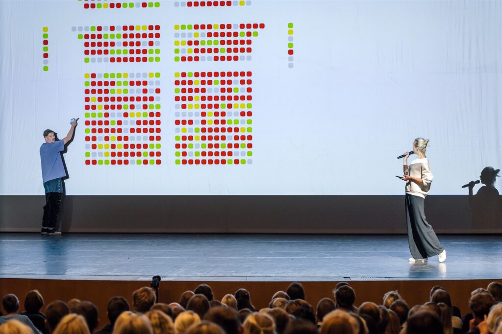 „Lühkarite“ sarja avalavastuse üks lõbusamaid stseene oli nn andmeteater, kus kõigepealt küsiti igasuguseid tundlikke küsimusi (ka poliitiliste eelistuste kohta). Andmed kuvati istekoha täpsusega seinal olevale hirmsuurele projektorilinale, visualiseeriti, kombineeriti ja kommenteeriti ulakal moel. Üritati ka vallalisi teatrikülastajaid omavahel vastuste sarnasuse põhjal paari panna. Selle paaripanekumängu ajal hangus infosüsteem, koos Henrik Kalmetiga andmeteatrit konfereerinud Mari-Liis Lillel oli võimalus demonstreerida kiiret kohanemisnutti. Sellises teatrilaadis tuleb olla mõnevõrra teisiti kohal, sest kunagi ei tea, mis kokkuvõttes saab. Kokku mahtus eri katsetusi ühte teatriõhtusse kaheksa.