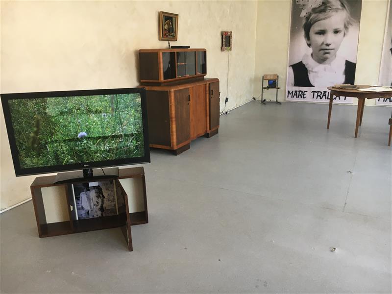 Mare Tralla näitus „Enne ja pärast“ toimub endise Pärnu vangla sööklas. Ruum viib meid tagasi nõukaaega. Kodust miljööd lisab retromööbel ning tekstiilid, mida pole aga lämmatavalt palju, pigem on need sümboolsed. Otsaseinas on kaks hiiglaslikku mustvalget autahvlifotot algkoolitüdrukust. Mööbel kannab eri suuruse ja kujundusega ekraane, kust paistavad kohati abstraktsed, kohati konkreetsed vaated – loodus, maamaja, nõudepesu, mingi liikumine jne. Oluline on tekst, mis on enamasti kunstniku enda või kellegi teise poolt eesti keeles sisse loetud. Järjest neid jutte kuulates koorub vaataja ees lahti lugu idüllilisest lapsepõlvest, mida lõhestas valus trauma. Asjast ettekujutuse saamiseks pole vaja jutte kuulata ega filme vaadata ilmtingimata täies pikkuses ega kindlas järjekorras.