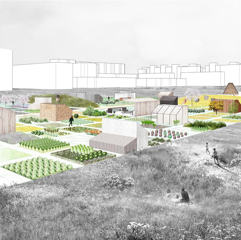 Põllumajanduslikus tsoonis, nn toiduväljal on ära kasutatud linna loodusalasid ja rahvas suunatakse linnakorilusele. Maastikku rikastab virtuaalne infokiht, mis annab elanikule teadmisi söödavate taimede kohta ja võimaldab tal kaardistada oma korjeraja. Ruumikasutaja ja loodus tegutsevad käsikäes – inimene annab kasvuks alge, külvates seemneid, millele järgneb looduslik valik. Nii saab toiduväljal kujundada isearenevaid taimekooslusi. Kasvatamisruumile lisanduvad ristkasutatavad varjualused õppetööks ja seemnete säilitamiseks ning mesilad, mis tagavad toidutaimedega rikastatud loodusmaastiku püsimise. Väliõpperuumis õpetatakse loodust märkama, antakse võimalus osaleda linna toiduvõrgustiku rajamises ja arendatakse seeläbi loodushoidlikku mõtteviisi.