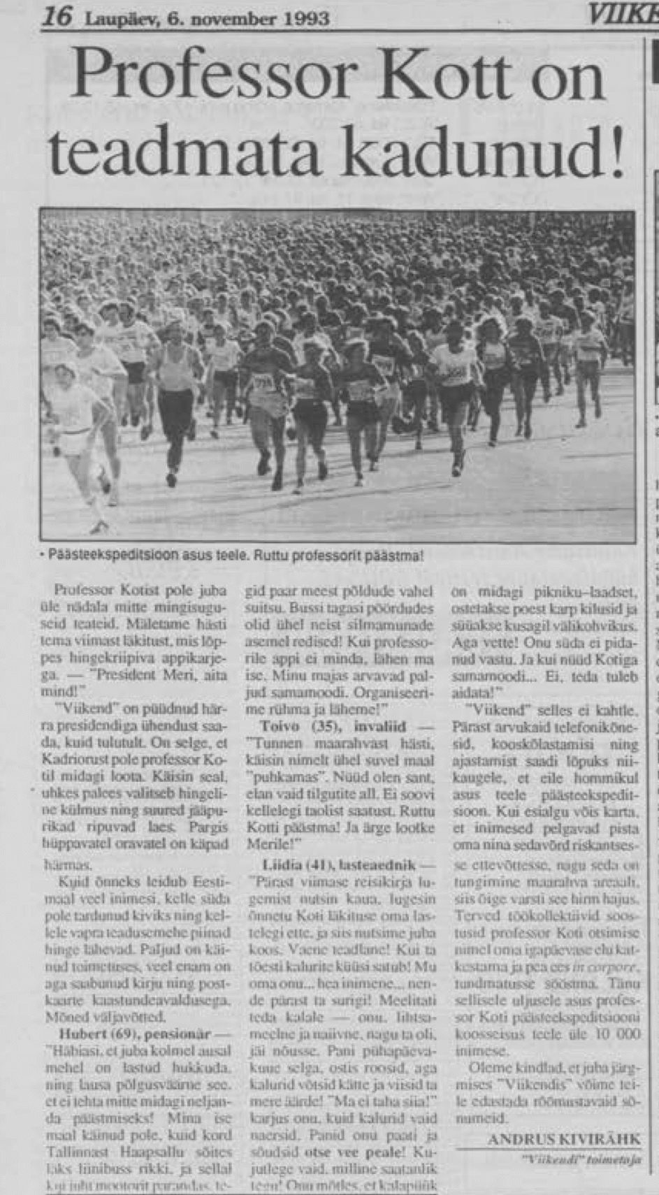 Selline võikski ju loodusteadlaste elu olla. Sest maailma ja selle toimimise süsteemne mõistmine peaks ju andma vaimsed hoovad sellega leppimiseks, ja ka sellest hoolimiseks. Aga kas see ikka on nii? Kas leiame pargipinkidelt professoreid, kes peavad seda maailma ja olemist piisavaks ega nõua enamat? Tänapäeva teadlase elu sarnaneb ehk hoopis rohkem professor Koti tegemistega, kes Andrus Kivirähu kirjutatud metareisikirjas avab maaelu koletut poolt (mis on õieti ka selle elu ainus pool, vähemalt nende tekstide järgi), mille tekkimine ja toimimine pakilist uurimist tarvitseb? Mäletate ju küll professor Kotti, kel oli igale nähtusele kohe mitu omavahel kärsitult konkureerivat hüpoteesi varnast võtta (lehm on svamm, rukkipõld on miiniväli jne). Nendega pidevalt žongleerides liikus ta pidurdamatult maaelu ohtude ja võimaluste vahel, vaid vahel reaalsusele alla vandudes ja maainimestega jooma kukkudes.