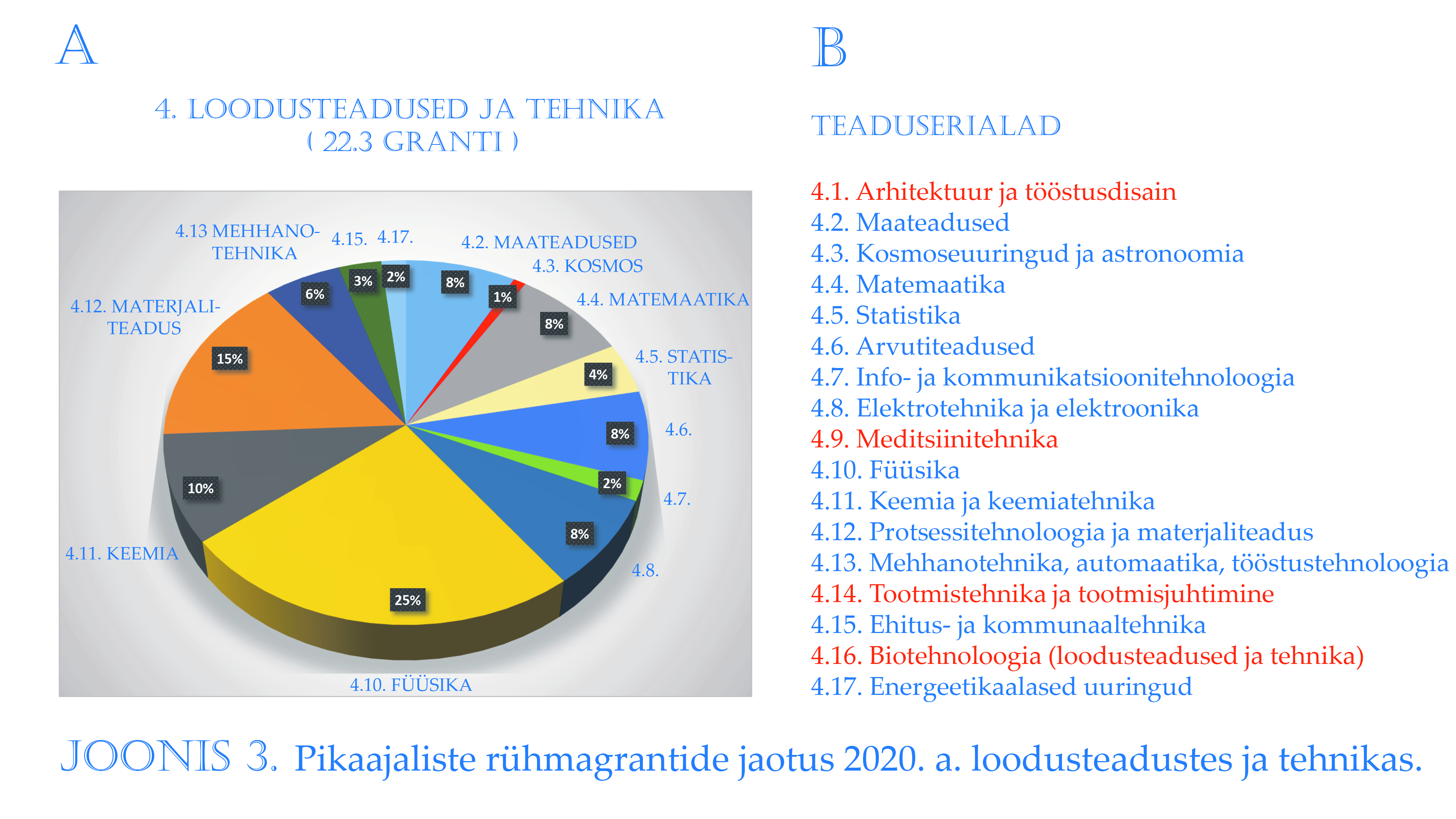 Jaotisest paistab jällegi silma ühe valdkonna domineerimine – selleks on füüsika. Ka siin vajab tehtud jaotusotsus põhjalikumat selgitust. Silma torkab, et mitu tehnikaeriala on väikese toetusega või jäänud sellest täielikult ilma. See pole iseenesestmõistetav.