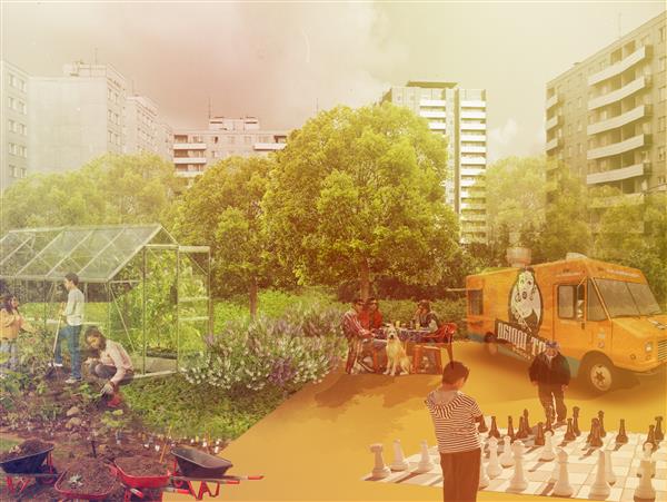 Paneelmajade sisehoovi lahendus pildil võib küll meenutada pigem Kalamaja või Supilinna õhustikku, kuid ka paneellinnakute väliruumi arendamisel on aluseks inimmõõtmest, mis soodustab kogukondlikku tegevust ning elanike ühtsustunde kasvu. Jan Gehli linnaplaneerimise teooria3 kohaselt on inimskaala puudumine modernistliku planeerimise üks suuremaid vigu. See tähendab, et Õismäe väliruumis pole arvestatud inimeste taju, liikumise, huvide ja käitumisega ning elanikke pole kaasatud oma elukeskkonna arendamisse. Seda iseloomustavad funktsioonita murualad, mis meeter-meetrilt parkimiskohtadeks muudetakse. Inimmõõtmelisusest lähtuvad lahendused, näiteks lillepeenarde rajamine, kogunemiskohtade loomine ja välimööbli paigutamine, on üks võimalusi olukorda parandada. Sellised lahendused eeldavad aga korteriühistute-keskset lähenemist, mille lähtekohaks on elanike huvide ja vajaduste kaardistamine.