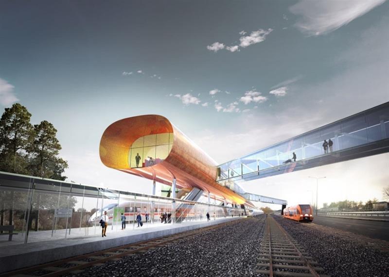 Rajatavast Rail Balticu terminalist saab Pärnu uus märgiline värav. Rail Balticu perrooni kohale kavandatav terminalihoone on ühendatud galeriidega. Piki Rail Balticu perrooni kulgeva terminalihoone ootesaalis saab reisija rongini soojas ruumis aega parajaks teha. Vihma ja tuule eest pakub kaitset ka terve perrooni pikkuses klaasgalerii. Reisiterminali juurde galeriisilla alla on kavandatud vähemalt sajale jalgrattale mõeldud jalgrattaparkla.