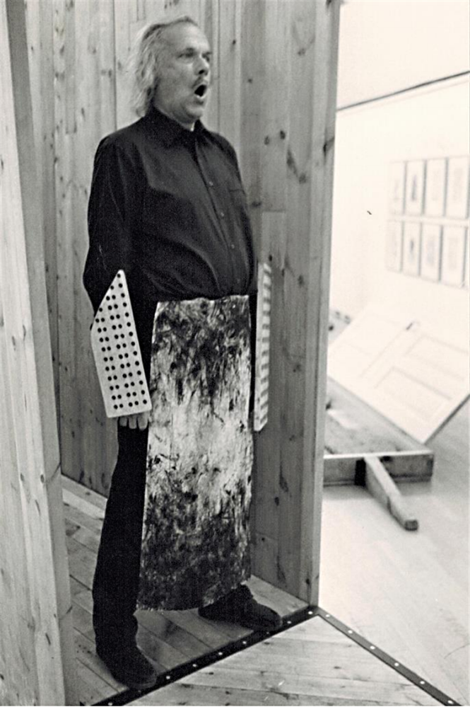 Ilmar Laaban 1986. aastal Franco Leidi näitusel Rootsis Norrköpingi kunstimuuseumis. Homme, 11. detsembril möödub Laabani sünnist sada aastat.