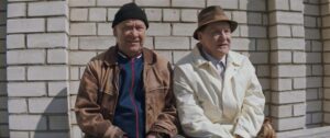 Nii teatrilaval kui ka kinolinal häid rolle teinud Sergei Makovetski sarmikas olek jäi mulle esimest korda meelde pankurina aastatuhandevahetuse-aegses filmis „Vend 2”.2 Tema Eduard „Rohelistes kassides“ on ilmselt sündinud oma paarimehe Markusega sama kahtlases naabruskonnas ning otse ratsu selga ja uljas kaabu peas. Vanaduspõlves on ta aga pehm ja kehastab kahest paarimehest romantilisemat. Teda näib kimbutavat ka Alzheimeri tõbi, kuigi ega kummagi kangelase mälu ei ole enam see, mis vanasti, ning restoranis külma arvega lahkudes unustatakse maha kaasas olnud moonakott.