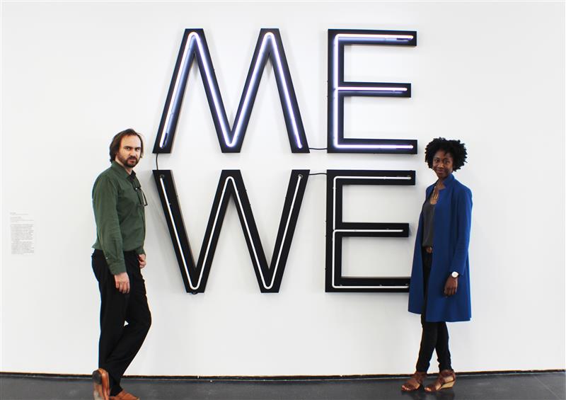 Dieter Roelstraete ja Naomi Beckwithi Malcolm X sõnadest inspireeritud vabaduse printsiibi ühisloomise aktsioon Glenn Ligoni skulptuuri „ Anna meile luuletus“ (2007) ees.