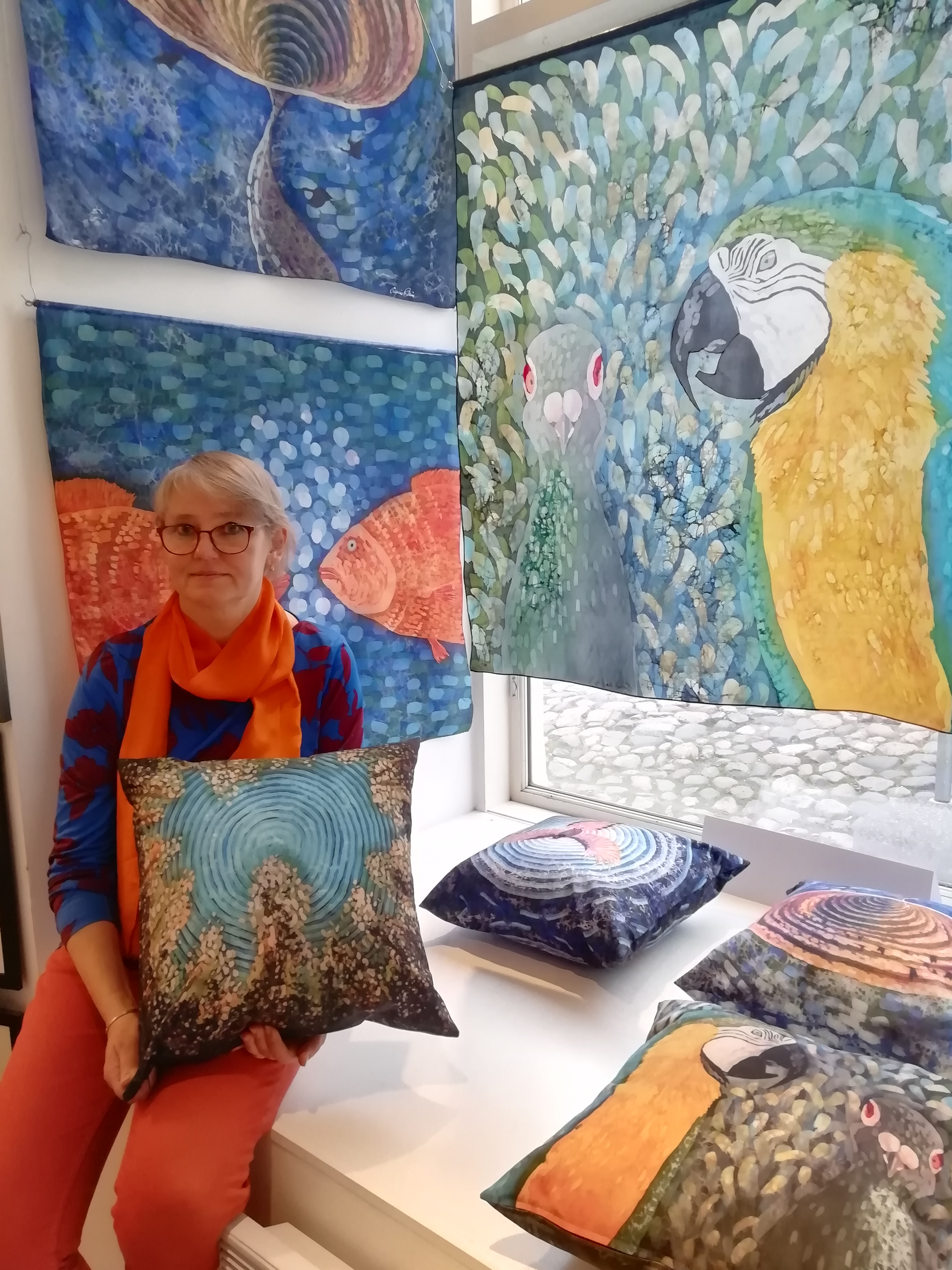 Vahabatika tehnikas maalitud linnud said siidile kevadel kui loodus tärkas ja õhus oli palju värskust ja sädinat. Ühiskond avanes paarikuisest lukusolekust. Oli võimalus kohtuda ja oli, millest rääkida. Esmalt edvistasid need värvilised siidile maalitud linnud näitusel Saaremaa kunstigaleriis.