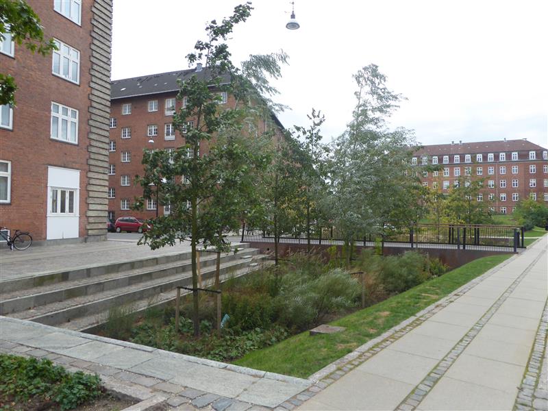 Kopenhaageni Tåsinge väljaku ehitamisel on silmas peetud nii tänavaruumi ilmestamise ja mitmekesistamise kui ka säästva sademeveelahenduse aspekte. Vihmavesi imbub pinnasesse, kogutakse spetsiaalsetesse lohkudesse, haljasalale ja jõuab ka linna kanalisatsioonisüsteemi.