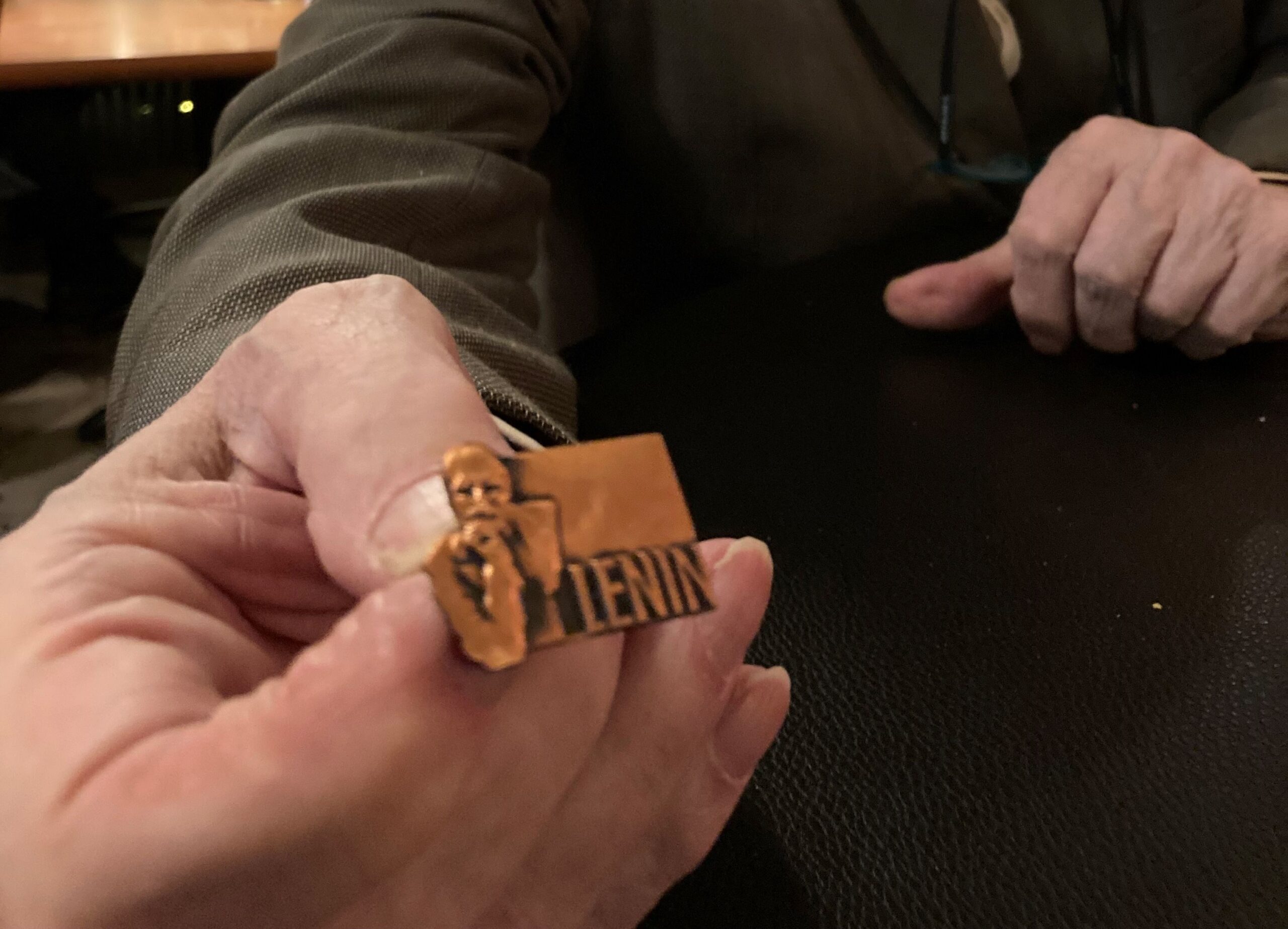 Kohe pubisse astudes silmasin ma vanemat seltsimeest, nagu hiljem selgus, ideelist kommunisti, kes oli kodunt siia tulnud oma Lenini kujude ja kogutud teostega, mis katsid terve laua, nagu oleks seal mingi miniatuurne Tallinna Orlovi lossi tagaaed kommunistlike monumentidega. Olin suvel Maarjamäe lossi taga skulptuuripargis veetnud mitu tundi, sest Helsingin Sanomat tegi intervjuu ja pildistas mind seal koos Lenini kujudega.3 Kohe oli selge, et Kotka pubirahvas on jagunenud kaheks: tõelisteks kommunistideks, kes nutavad oma maha võetud Lenini-kuju taga, ja siis nende n-ö vastasparteiks, kes põhjendab linnavalitsuse tegevust Ukraina sõjaga. Ümarlauda olid tulnud asja arutama ka kohaliku muuseumi juhataja Terhi Pietiläinen (maha võetud Lenin on peidetud Kymenlaakso muuseumi lattu) ja filmirežissöör Joona Mielonen, kes oli hääletanud linnavolikogus kuju mahavõtmise vastu. Peab kohe ütlema, et kirjastaja Kalle müüs sellel õhtul soomekeelset „Lenini valssi“ rohkem kui mõnel suurel raamatumessil. Ilmselt inimesed eeldasid, et teoses seikleb tore ja vahva Lenin, kellest nad olid pubi ees pargis just ilma jäänud! Tegelikult teab ju iga „Lenini valsi“ läbilugenu, et seal ollakse antud massimõrvari suhtes väga kriitiline ja lastakse suur kurjategija Tartu kassijõukudel koguni tükkideks rebida …