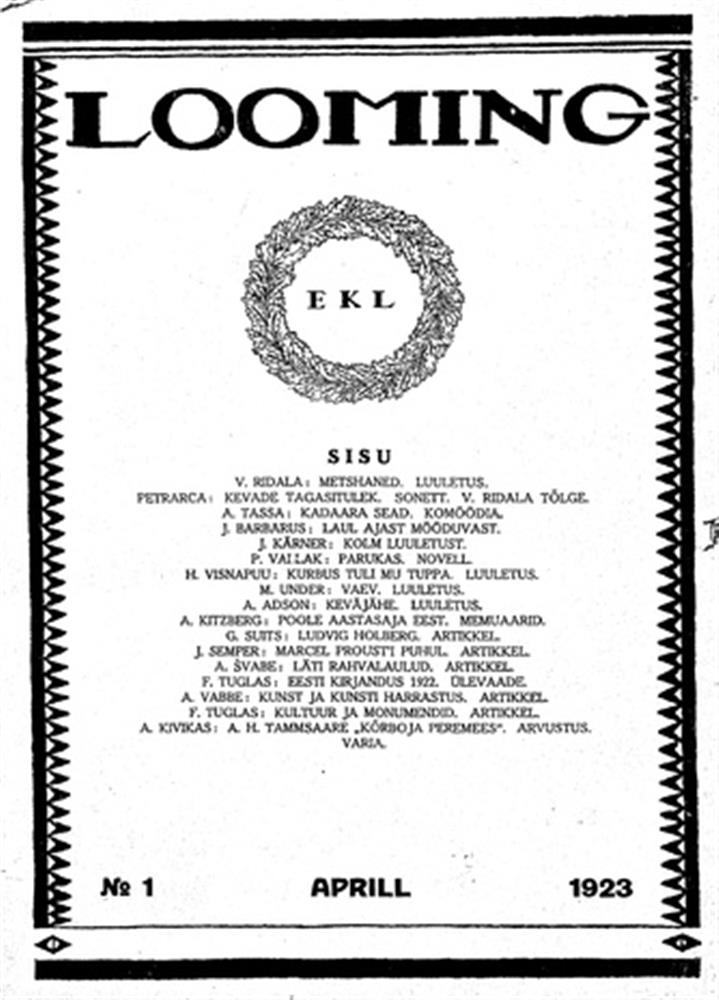 Ajakirja Looming esimene number ilmus 1923. aasta aprillikuus.