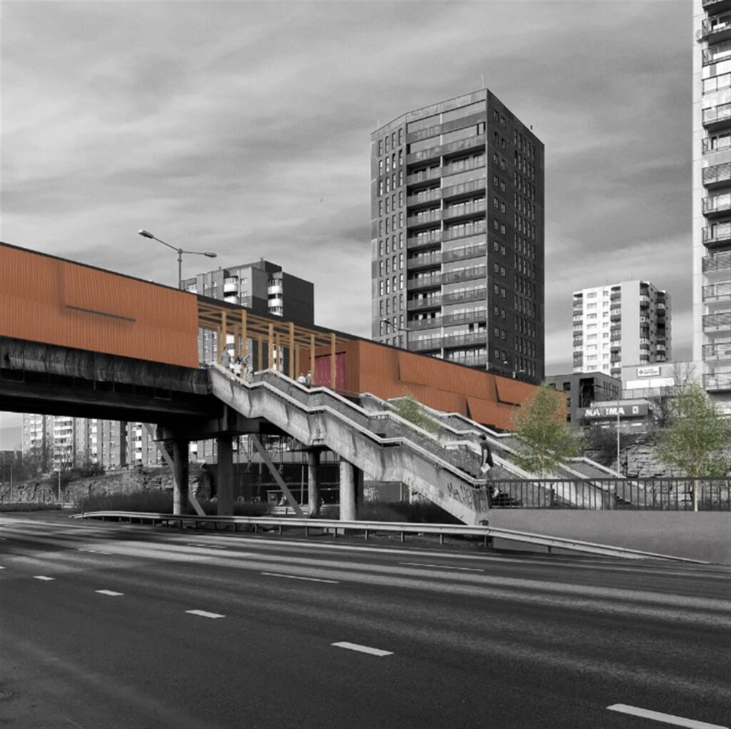 Laagnas asub Saarepiiga sild. Seda võib kõrvutada keskaegsete sildade või hoopis tänapäeva kiirteede sillarestoranidega. Igal juhul on neil kõigil kaks sisenemispunkti ning need sillad toimivad kohtumispaigana inimestele, kes muidu omavahel kokku puutuda ei pruugi. Kiirtrammipeatuse jaoks rajatud Saarepiiga sild saaks olla samasugune ühendaja, sest see paikneb tihedas asumikeskuses. Praegusest erinev uus mahuline lahendus pakub ruumi kohtumisteks, kauplemiseks või hoopiski hingetõmbepausiks. Intensiivne linnakeskkond ongi sealne ruumipinge. Mahulise lahenduse puhul ei ole Laagna tee enam nii range keskuste lahutaja ja hoonetevaheline piir, nagu ta seda praegu on.