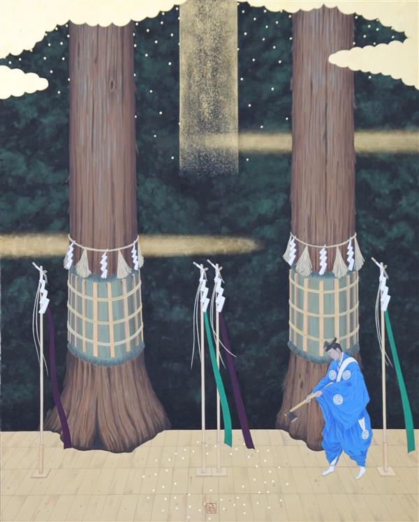 Maalidel on kujutatud mitmed tseremooniad, mida viiakse läbi shintō peapühamus Ise Jingūs siis, kui iga kahekümne aasta järel võetakse ette pühamu hoonete ümberehitamine. Viimati uuendati hooneid 2013. aastal ning selle sündmuse puhuks tellis pühamu ka sel näitusel eksponeeritud maaliseeria. See on otsekui tseremooniate kroonika, ent annab ühtlasi tunnistust kunstniku enese pühendunud religioossest rännakust aastate jooksul, mil ümberehitus kestis. Pühamute tsükliline rekonstrueerimine kannab edasi lõputu uuenemise šintoistlikku ideed, mis Torii Rei kui XXI sajandi nihonga-kunstniku käe läbi omandab lisaks traditsioonilise vormi jätkumise värvingu.